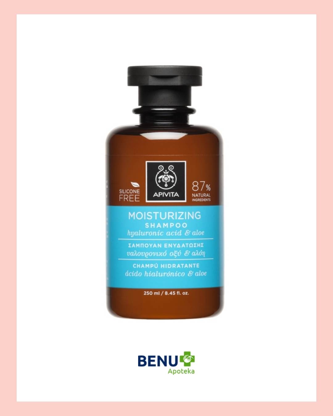 Apivita šampon sa hijaluronskom kiselinom, alojom, propolisom, žalfijom, medom i ovsenim proteinima pružiće intenzivnu hidrataciju svim tipovima kose uz zaglađivanje i očuvanje vlage vlasi. Potražite u Benu apoteci u BIG FASHION Kragujevac centru.
