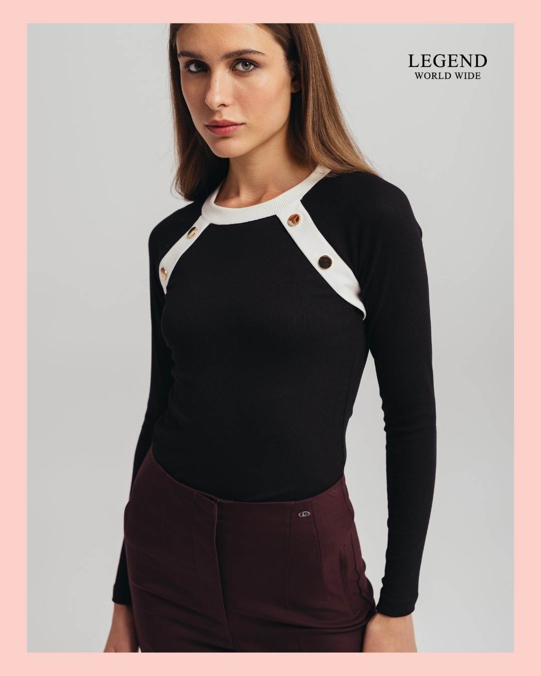 Kontrastni detalji na garderobi su obavezni ove sezone. Crna majica dugih rukava od rebrastog pamuka sa kontrastnim belim detaljima i dugmićima iz nove Legend kolekcije, upotpuniće svako jesenje stilsko izdanje. Savršen je izbor za nošenje u svakodnevnim i poslovnim prilikama, uz pantalone i suknje različitih krojeva. Potražite u Legend maloprodajnom objektu u BIG FASHION Kragujevac centru.
