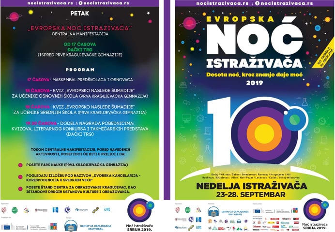 Tokom naredne sedmice u Kragujevcu će biti organizovani različiti programi kojima se obeleževa nedelja istraživača. Centralna manifestacija „Evropska noć istraživača“ biće održana u petak, 27. septembra, na Đačkom trgu ispred Prve kragujevačke gimnazije.