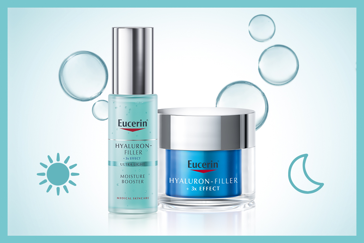 Eucerin®Hyaluron-Filler Hidro Booster je izuzetno lagan i osvežavajući serum, brzo se upija i zato je idealan za jutarnju, brzu rutinu nege, kao podloga za šminku. Odgovara svakom tipu kože, bilo da je po tipu suva, normalna ili masna, pogodan je čak i za osetljivu kožu. Zbog svoje izuzetno lagane strukture posebno odgovara osobama koje ne vole preparate koje osećaju kao “teške” nakon nanošenja. Sadrži samo 11 sastojaka, a njegovo moćno dejstvo počiva, pre svega, na udruženom dejstvu hijaluronske kiseline srednjeg i kratkog lanca i glicerina. Eucerin®Hyaluron-Filler Noćni Hidro Booster u osnovi formulacije sadrži hijaluronsku kiselinu dugog i kratkog lanca. Prva vezuje vodu na površini kože, a druga prodire dublje u kožu, do mesta gde nastaju bore. Glicerin u ovom serumu obezbeđuje veoma visoku hidrataciju, dok pro vitamin B5 aktivno regeneriše i jača kožu preko noći. Uz to Vitamin E štiti kožu od oksidativnog stresa.