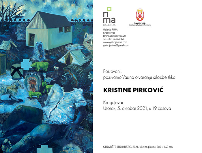 Večeras od 19 časova, kragujevačka Galerija RIMA otvara izložbu slika mlade umetnice Kristine Pirković. Slike iz najnovijeg ciklusa radova koje premijerno predstavlja u Kragujevcu inspirisane su apokaliptičnim duhom pesme „Očekujući varvare“ Konstantina Kavafija.