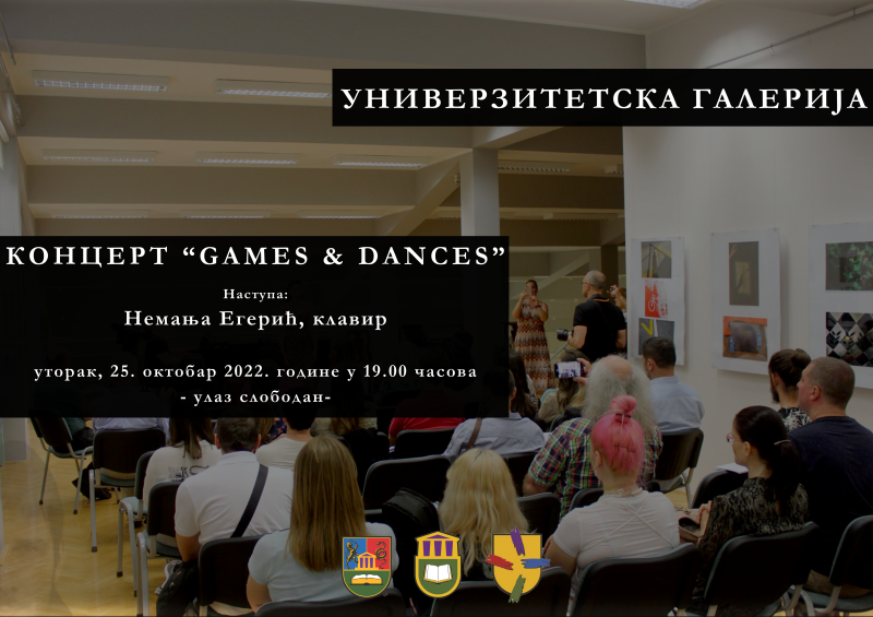 Koncert Nemanje Egerića večeras u Univerzitetskoj galeriji Koncert pijaniste Nemanje Egerića, originalnog naslova “Games and dances” , biće održan večeras od 19 sati u Univerzitetskoj galeriji. Nemanja Egerić će izvesti kompozicije J. S. Baha, Đ. Kurtaga i Đ. Ligetija. Previous Article Počinje 16. nezavisni KRAF 2022 Next Article Premijera predstave Ilda Geršner u Knjaževsko-srpskom teatru