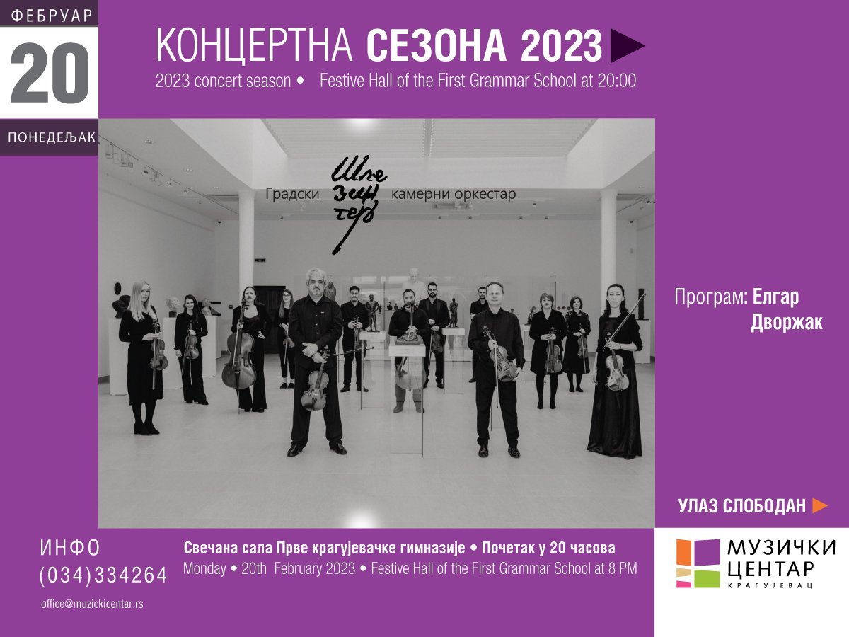 Muzički centar Kragujevac, u okviru koncertne sezone, organizuje koncert Gradskog kamernog orkestra Šlezinger koji predstavlja jedan od glavnih stubova muzičkog života u Kragujevcu.