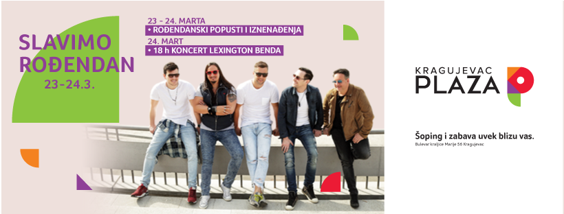 U subotu i nedelju, 23.i 24. marta, šoping centar Kragujevac Plaza proslavlja rošendan! Uz specijalni vikend popusta u brojnim radnjama centra, tu je i sjajna zabava koja počinje u subotu od 14 sati, uz dobrodošlicu koju će posetiocima poželeti Duh iz čarobne lampe. Slavlje se nastavlja uz plesni performans i animacije svetlećih vila i robota, dok vas u restoranskom delu očekuje i torta želja na kojoj možete ostaviti rođendansku čestitku i učestvovati u rođendanskom poklon konkursu.