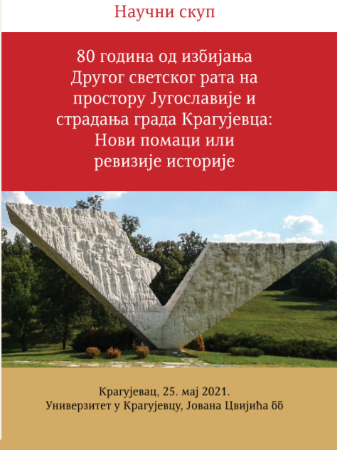 Osamdeset godina od početka rata na prostoru Jugoslavije i kragujevačkog stradanja, kada gotovo i nema više živih učesnika događaja, povod je da se okupe istoričari koji bi predstavili nove pomake u našim znanjima o najdramatičnijem periodu dvadesetog veka. Ova značajna godišnjica, nažalost, obeležena je u svetu novim interpretacijama i nekim drastičnim promenama u ocenama uzroka i posledica Drugog svetskog rata. Sa novim naraštajem istoričara otpočela su istraživanja na manje poznatim aspektima Drugog svetskog rata i ovaj naučni skup je prilika da se neki od rezultata tih istraživanja izlože.