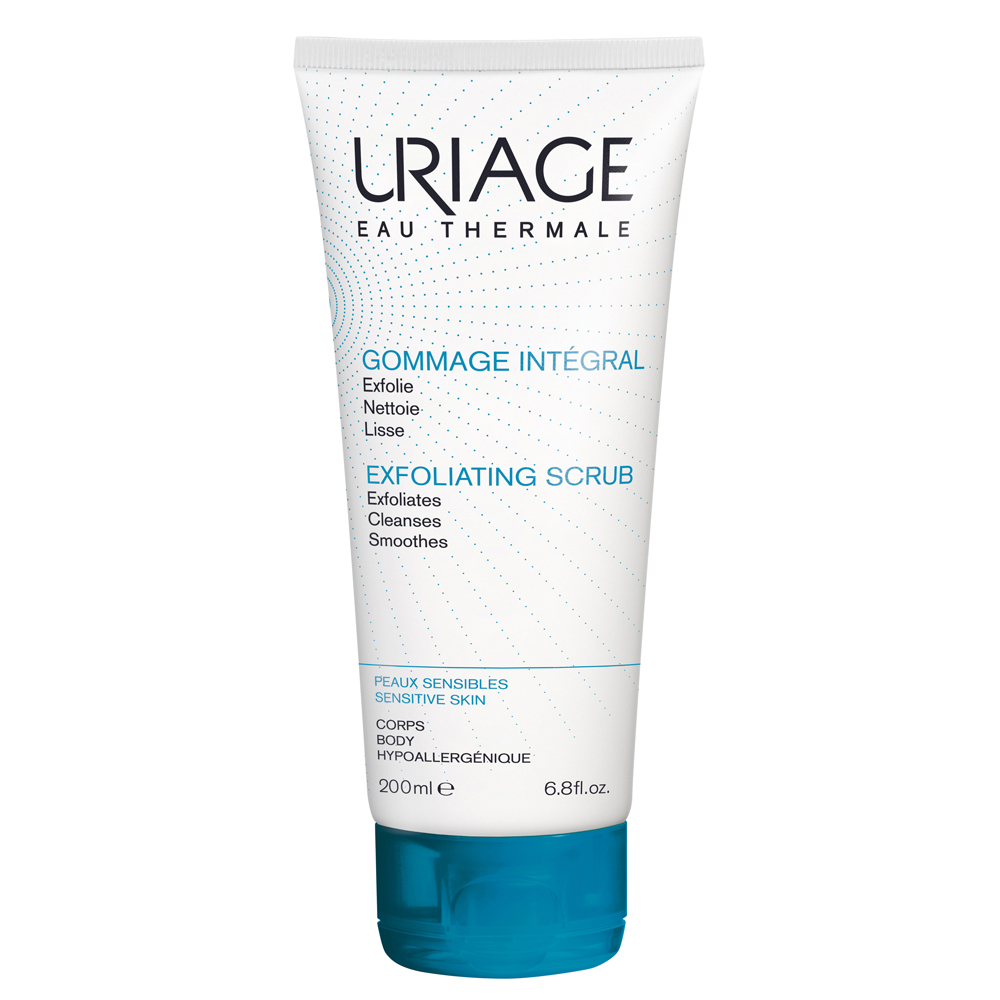 Uriage Gommage Integral – Hemijski, a ujedno i mehanički piling vrši blagu eksfolijaciju kože lica i tela. Aktivne komponente ovog preparata su Uriage termalna voda, nežna mikrozrna koja sadrže 6% voćnih kiselina koje se oslobađaju tokom nanošenja pilinga kao i vitamini C, E i glicerol koji hrane kožu. Zahvaljujući svojoj jedinstvenoj strukturi, nežno čisti, pilinguje kožu dok je istovremeno bogato neguje. Koža je savršeno glatka i baršunasta.