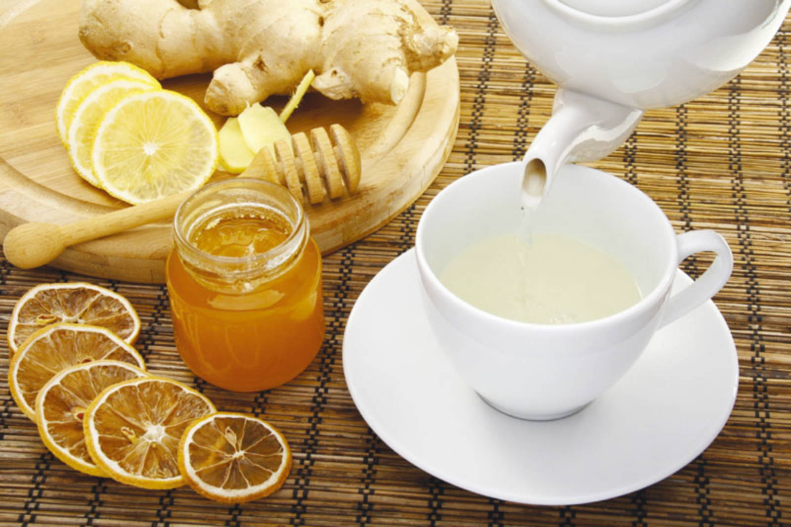 Četiri kašičice đumbira u prahu (ili korena đumbira koji ste prethodno iseckale na sitnije komade) dodajte u dva litra mlake vode, pomešajte sa kašikom meda i sokom od jednog limuna, Napitak konzumirajte tokom celog dana. Đumbir je poznat po svom analgetskom delovanju, odnosno ublažavanju bolova.