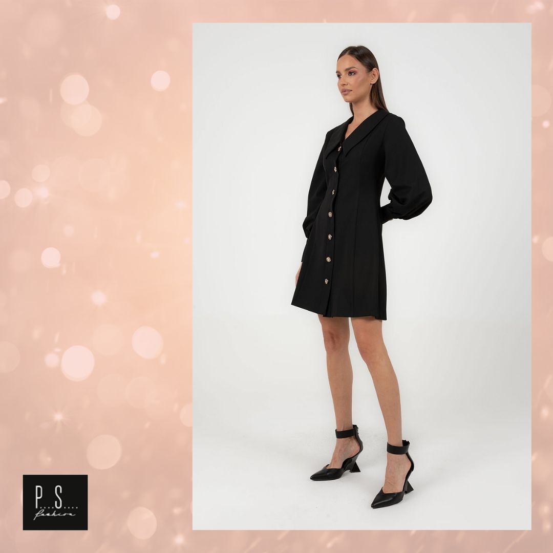 Model haljine koji će uvek biti odličan izbor! Ove praznične sezone odaberite malu crnu haljinu A kroja, sa elegantnom kragnom, dugmićima u srebrnoj boji i naglašenim rukavima iz P…S….Fashion kolekcije dostupne u BIG FASHION Kragujevac centru. Klasična, svedena, elegantna i istovremeno upečatljiva – neka praznična party sezona počne!