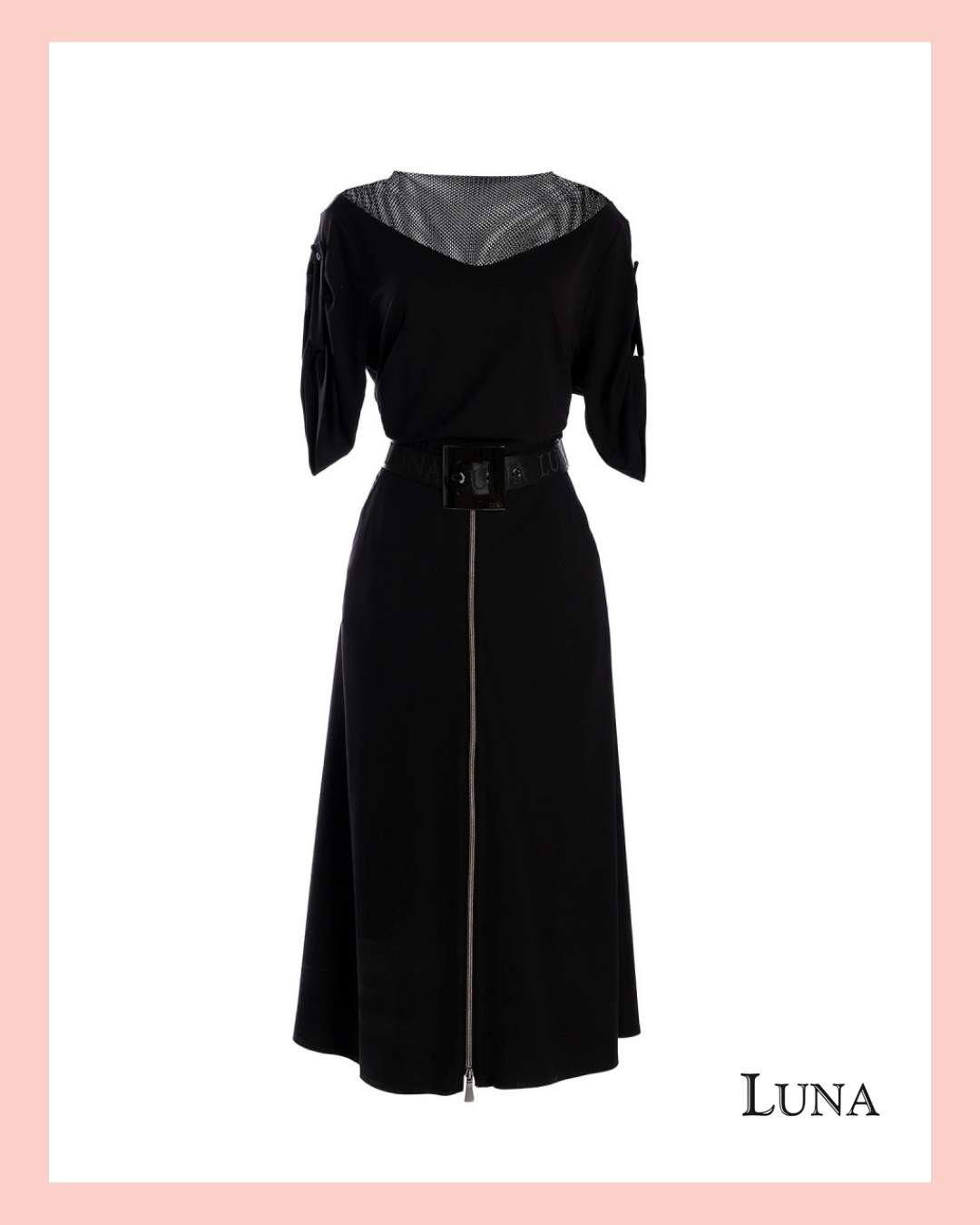 Crna haljina midi dužine izrađena od 100% viskoze, sa naglašenim strukom i upečatljivim pojasom je model izbora za svaku priliku – od dnevnih varijanti za šetnju po gradu ili vikend ručak, do svečanih prilika uz odgovarajuću obuću i aksesoare.