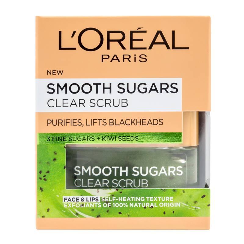Svakoj koži je potreban blag, a efikasan piling dva puta nedeljno. L’oreal Smooth Sugars piling sa semenkama kivija postepeno i vrlo blago zagreva kožu, što omogućava otvaranje pora. Kombinacija šećera i usitnjenih semenki kivija uklanja nečistoće i mrtve ćelije sa površine kože, a posebno dobro “skida” izumrlu kožu u regiji oko flekica, ožiljaka, posekotina. Ovaj piling može da se koristi i kao piling za usne.