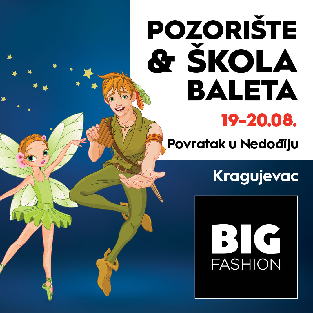 Tokom vikenda 19. i 20. avgusta od 17 do 20 sati najmlađi posetioci BIG FASHION Kragujevac centra imaće jedinstvenu priliku da uče i uživaju u svetu baleta, kao i u izvođenju baletske predstave “Povratak u Nedođiju”.