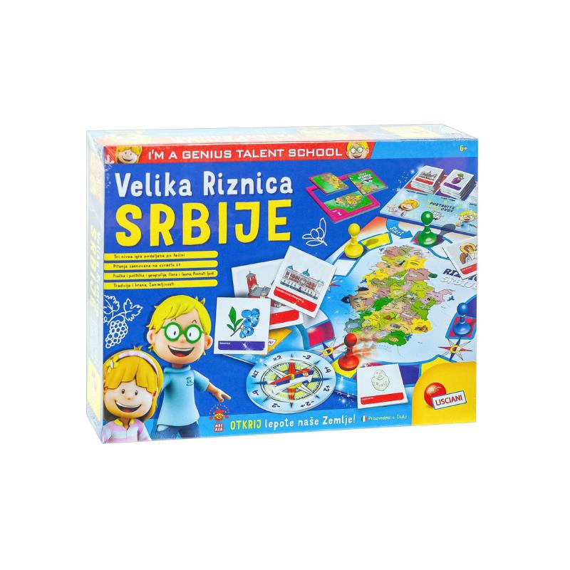 Velika riznica Srbije sadrži kartice sa slikama spomenika, gradova, životinja, biljaka, tradicionalnih predmeta, hrane i poznatih ličnosti iz Srbije, uz kviz i “trku” za neophodne delove za sastavljanje slagalice. Igra je namenjena deci starijoj od šest godina, a zabava uz bolje upoznavanje Srbije je zagarantovana.