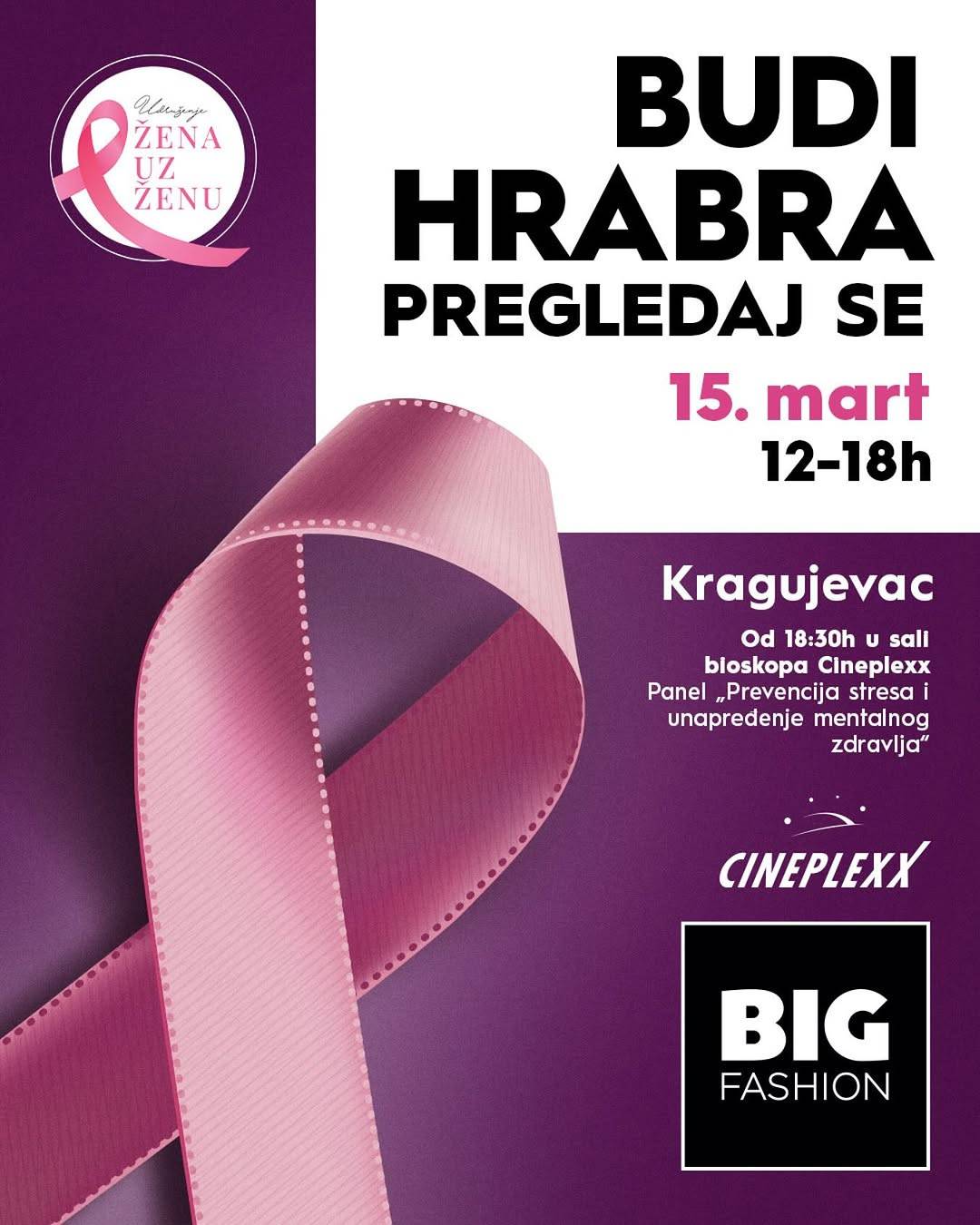 BIG FASHION Kragujevac u saradnji sa Udruženjem Žena uz ženu, organizuje besplatan ultrazvučni pregled dojki za sve žene do 45 godina starosti.