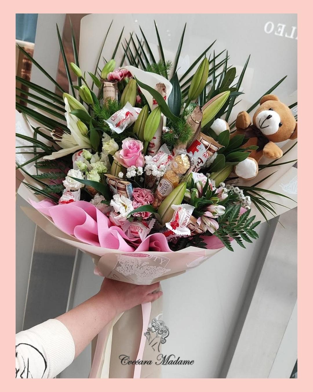 Buket svežeg cveća razigranih boja je odlična ideja za poklon za Međunarodni dan žena i predstojeće prolećne dane. Buketi sa ružama i mirisnim ljiljanom obradovaće svaku ženu, a dodajte tome i detalje poput njenog omiljenog slatkiša i plišanog mede za još više nežnosti i personalizaciju poklona. Istražite ponudu dostupnih buketa u cvećari Madame u BIG FASHION Kragujevac centru ili poručite jedinstven buket po vašoj želji.